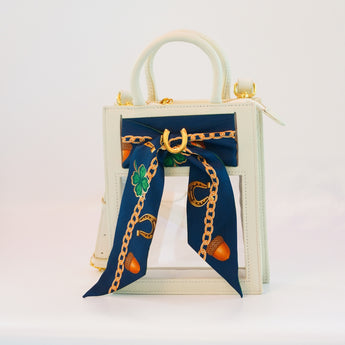 Gameday has never looked better. Our new Mini Calista Clear stadium bag is the perfect combination of high street chic and clear bag compliance. The custom-designed Twillionaire scarf creates a natural buffer between prying eyes and all inside. Zip through security in no time, and turn all the right heads on the way.