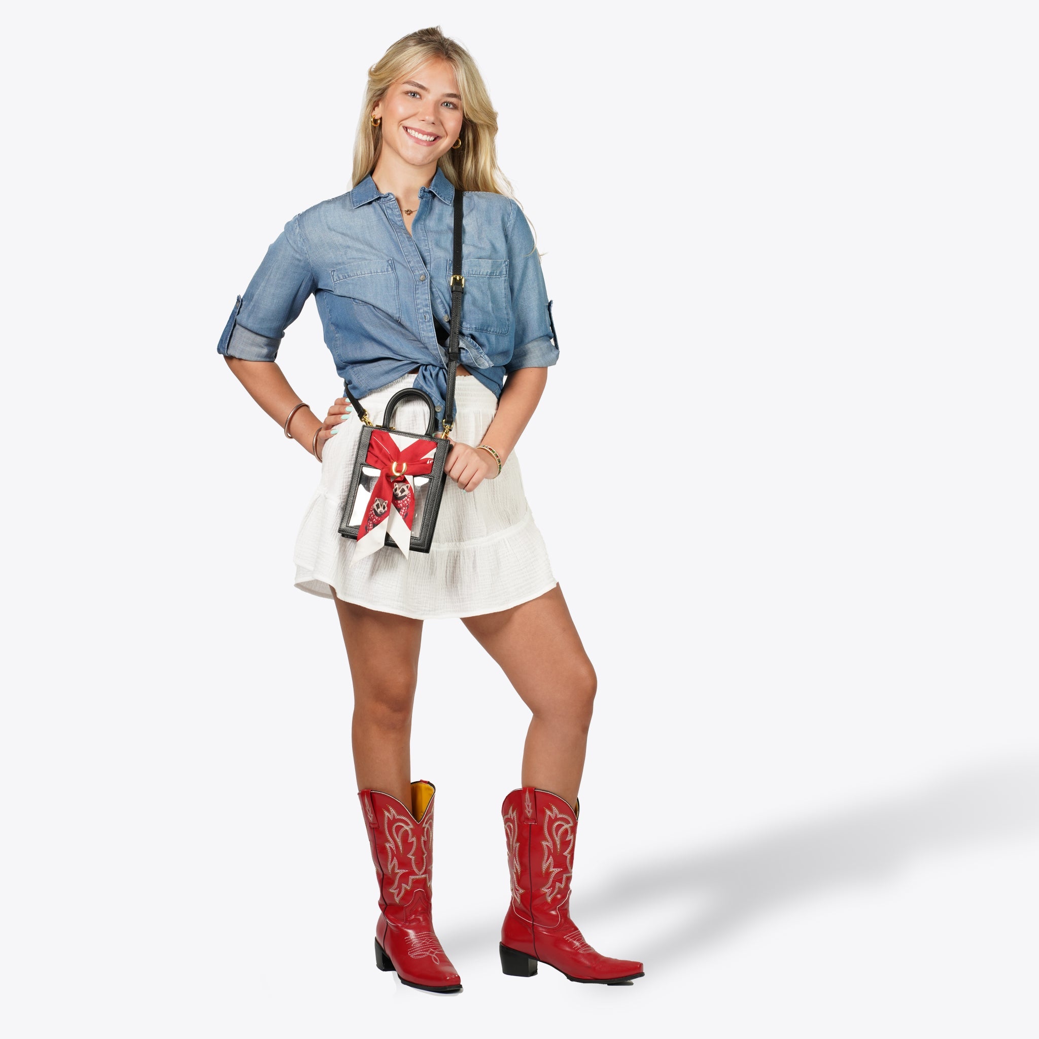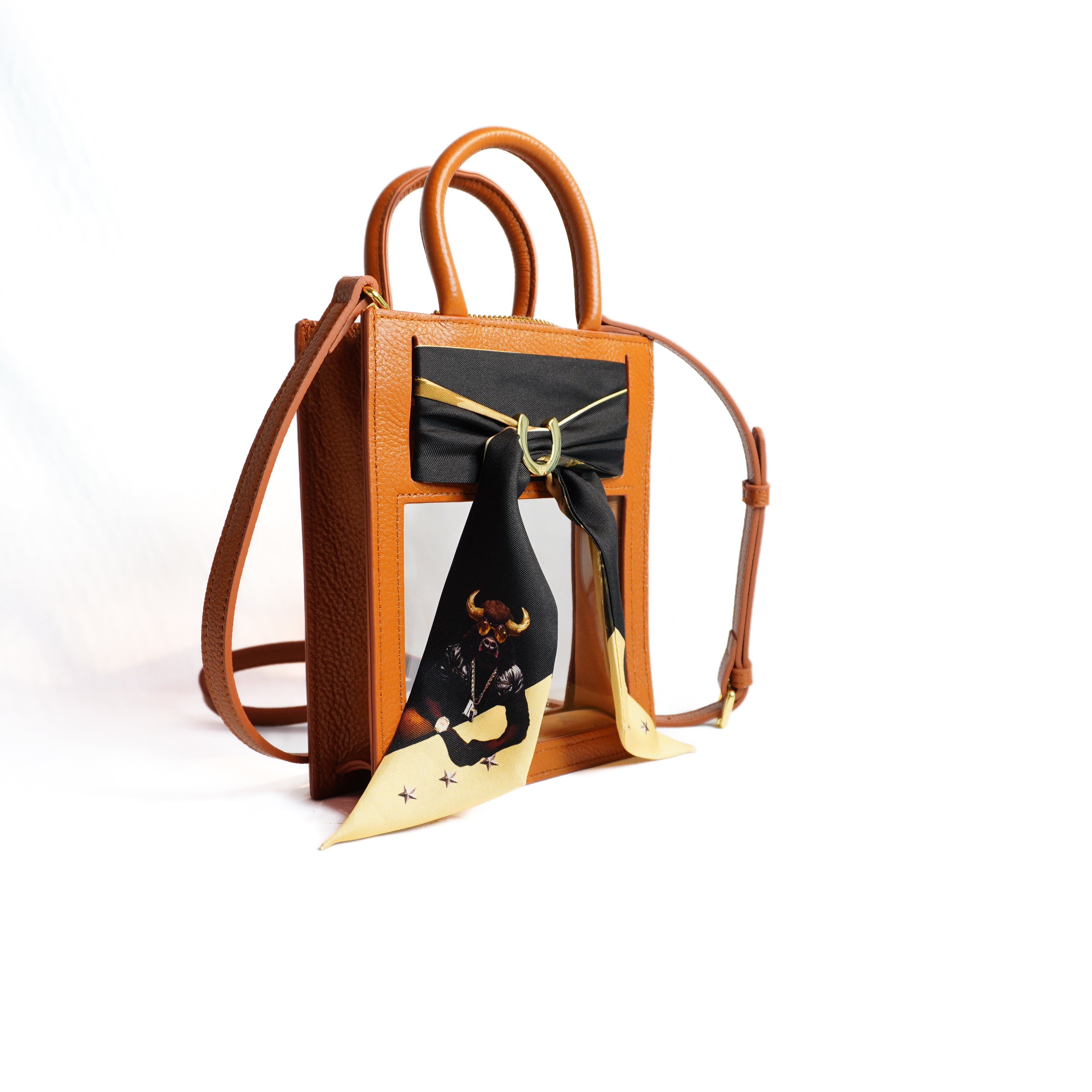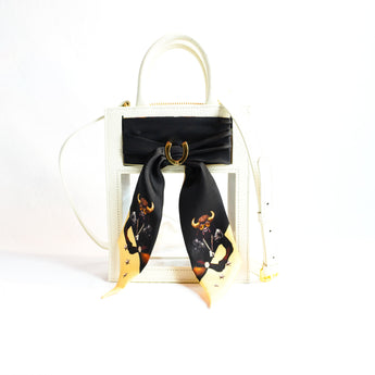 Gameday has never looked better. Our new Mini Calista Clear stadium bag is the perfect combination of high street chic and clear bag compliance. The custom-designed Twillionaire scarf creates a natural buffer between prying eyes and all inside. Zip through security in no time, and turn all the right heads on the way.