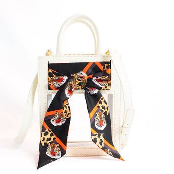 Gameday has never looked better. Our new Mini Calista Clear stadium bag is the perfect combination of high street chic and clear bag compliance. The custom-designed Twillionaire scarf creates a natural buffer between prying eyes and all inside. Zip through security in no time, and turn all the right heads on the way.