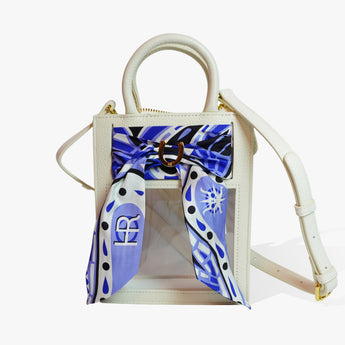 Gameday has never looked better. Our new Mini Calista Clear stadium bag is the perfect combination of high street chic and clear bag compliance. The custom-designed Twillionaire scarf creates a natural buffer between prying eyes and all inside. Zip through security in no time, and turn all the right heads on the way.