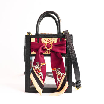 Gameday has never looked better. Our new Mini Calista Clear stadium bag is the perfect combination of high street chic and clear bag compliance. The custom-designed Twillionaire scarf creates a natural buffer between prying eyes and all inside. Zip through security in no time, and turn all the right heads on the way.