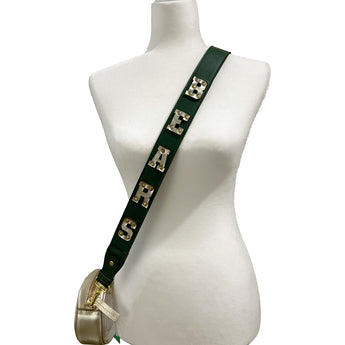 Hampton Road Custom Leather Bag Strap – Non-Adjustable Strap with Hand-Tooled Letters & Gold Hardware